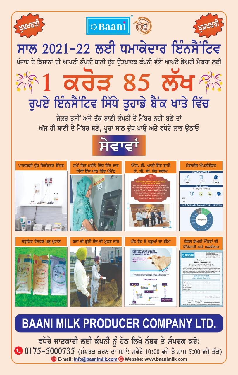 Visit of Hon’able Speaker Punjab Vidhan Sabha S. Kultar Singh Sandhwan, at Head Office of Baani Milk Producer Company Limited on 2nd June 2022.
